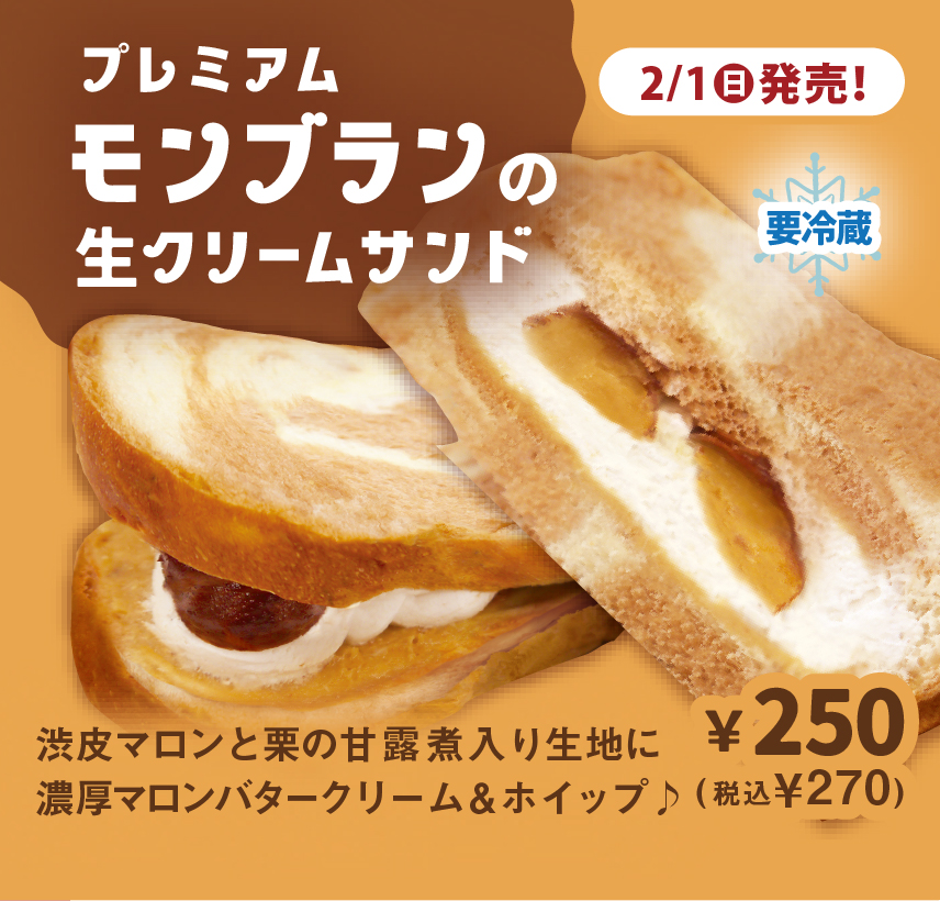 2月1日(日)発売!🌰期間限定🌰『プレミアムモンブランの生クリームサンド』